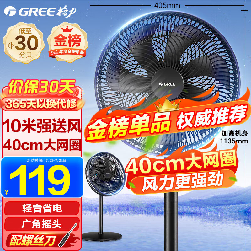 格力(GREE)电风扇家用节能落地扇学生立式大风量客厅宿舍机械轻音电扇 七叶黑色机械款FD-35X65h7(森林强劲风)价格:139.00元!