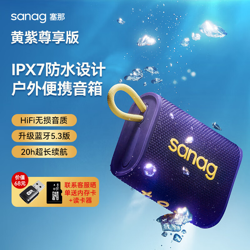 SANAG塞那 蓝牙音箱便携式 户外音响 低音炮桌面微信收款扩音器 户外露营骑行防水设计 M13SProMax 紫价格:319.00元!