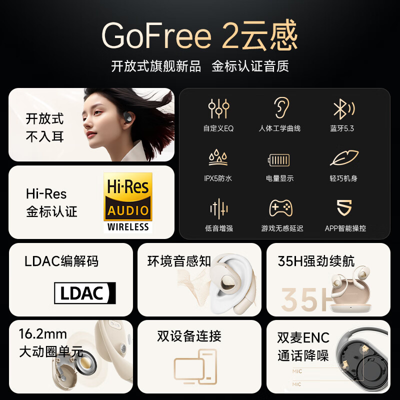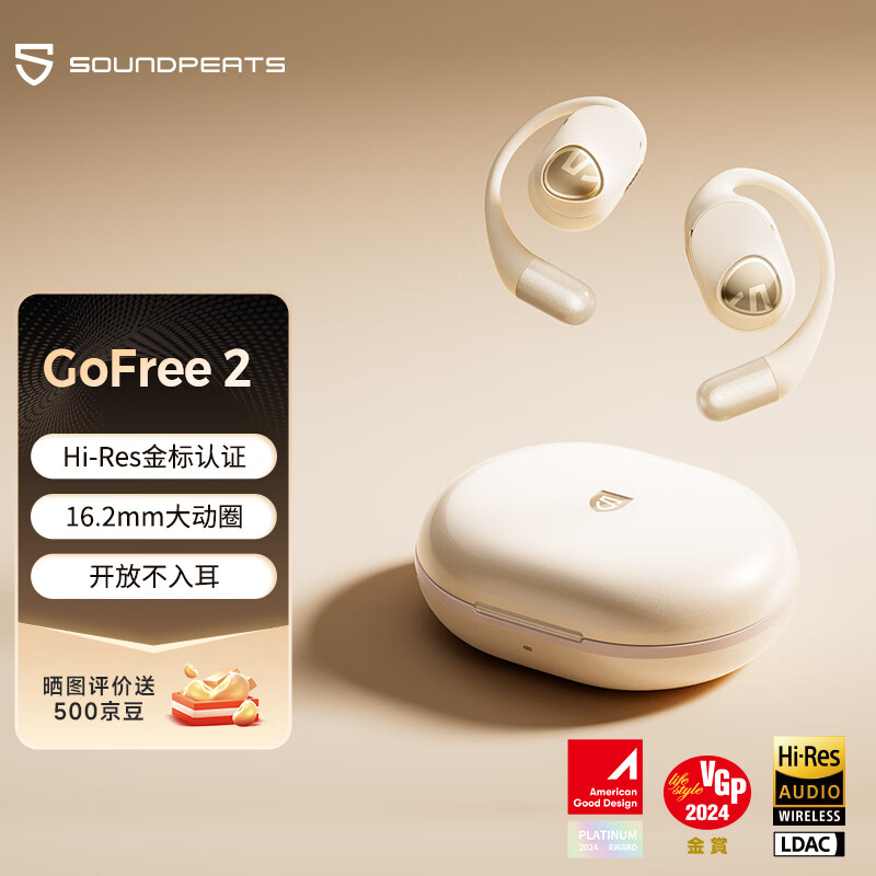 泥炭(SoundPEATS)GoFree 2 不入耳气传导开放式蓝牙耳机 挂耳式长续航运动跑步Hi-Res通话降噪耳机 蓝牙5.3 卡其米价格:299.00元!