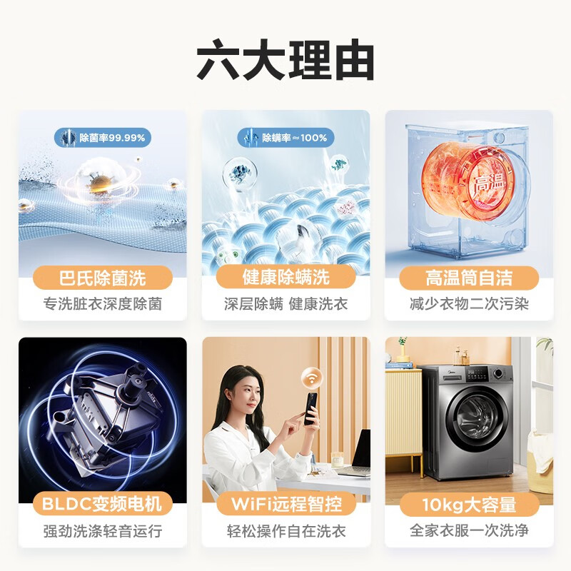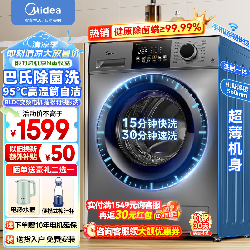 美的(Midea)10公斤滚筒全自动变频一级能效洗衣机除菌除螨洗香薰筒自洁大容量羽绒洗家用智能以旧换新洗衣机 【单洗功能】巴氏除菌除螨+智控+筒自洁133价格:1599.00元!