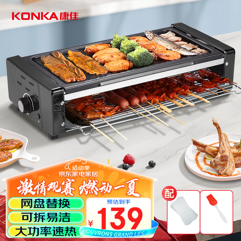 康佳(KONKA)电烧烤炉 双层烤串机不粘电烤盘烤肉机室内无烟烧烤架子韩式烤肉锅电烤炉 KEG-W261A价格:139.00元!