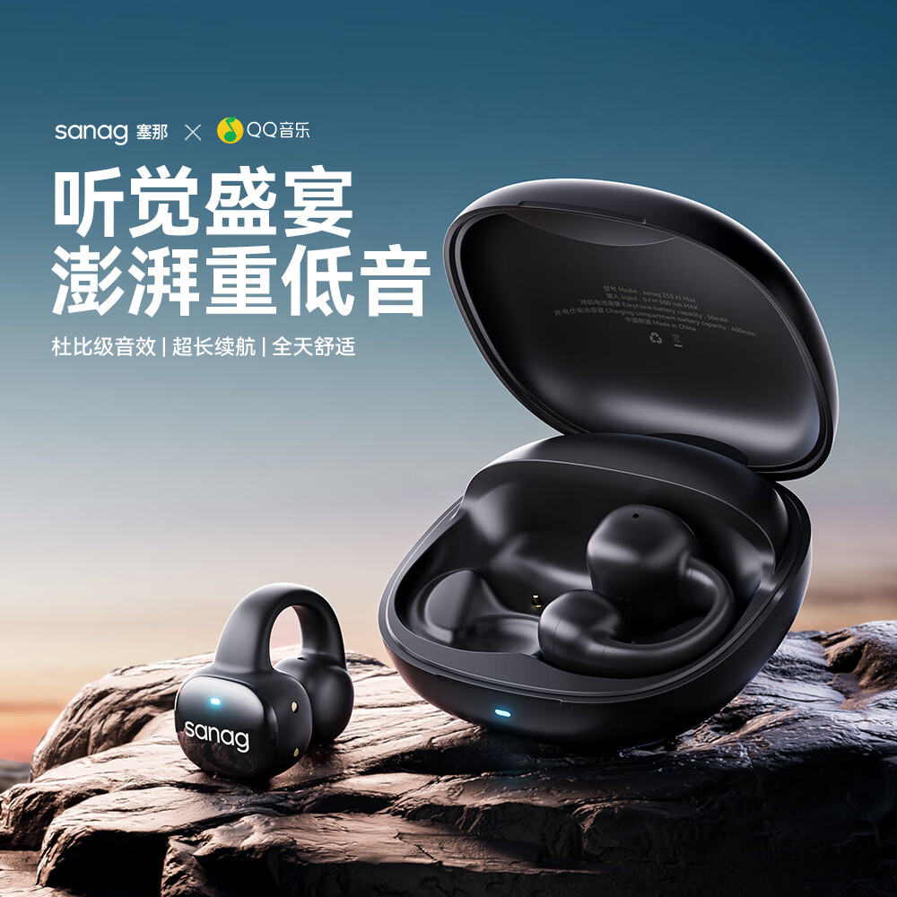 SANAG【听觉盛宴|澎湃重低音】Z53/S5S蓝牙耳机骨传导概念耳夹式耳机耳挂式运动跑步骑行高清通话防水 墨染黑|杜比级环绕音效|版价格:279.00元!