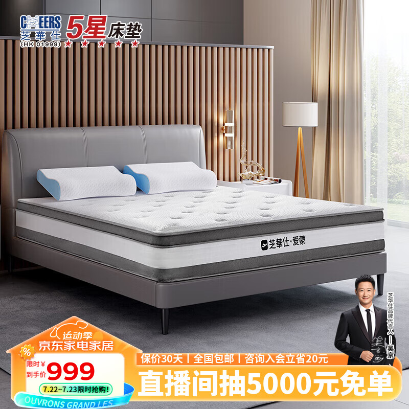 芝华仕(CHEERS)乳胶床垫独立弹簧软硬两用席梦思芝华士D026青少年版1.5米价格:999.00元!