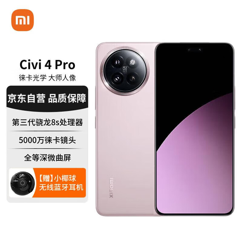 小米Civi 4 Pro 12GB+512GB 柔雾粉 5000万徕卡镜头 第三代骁龙8s 全等深微曲屏5g 红米小米手机su7价格:2899.00元!