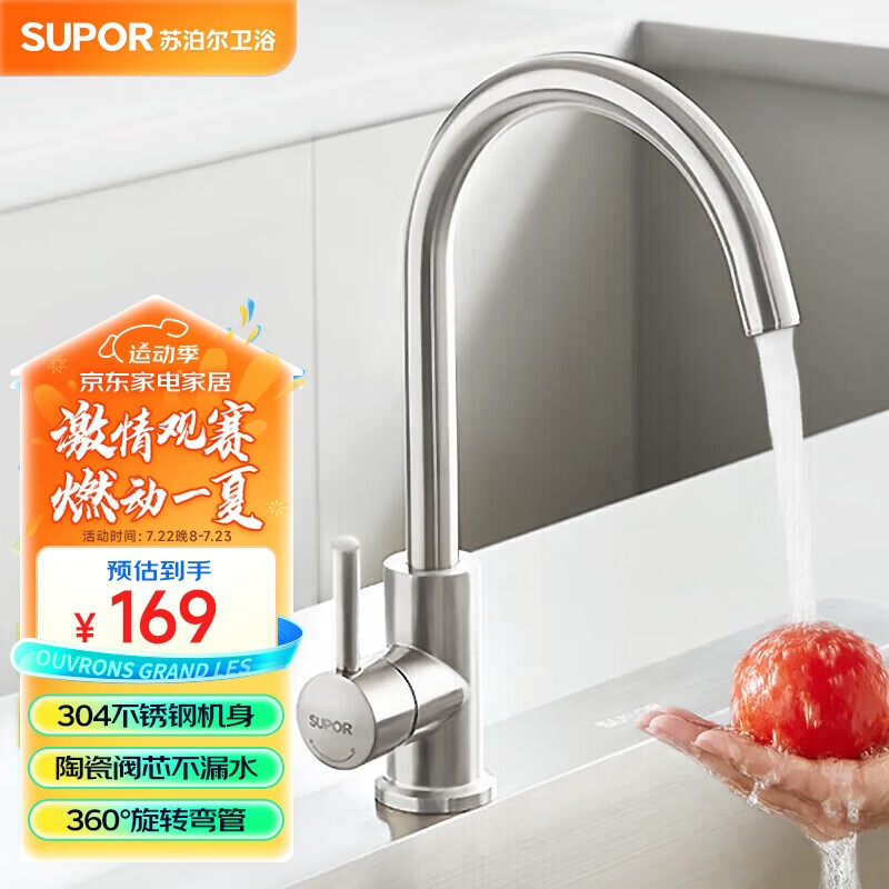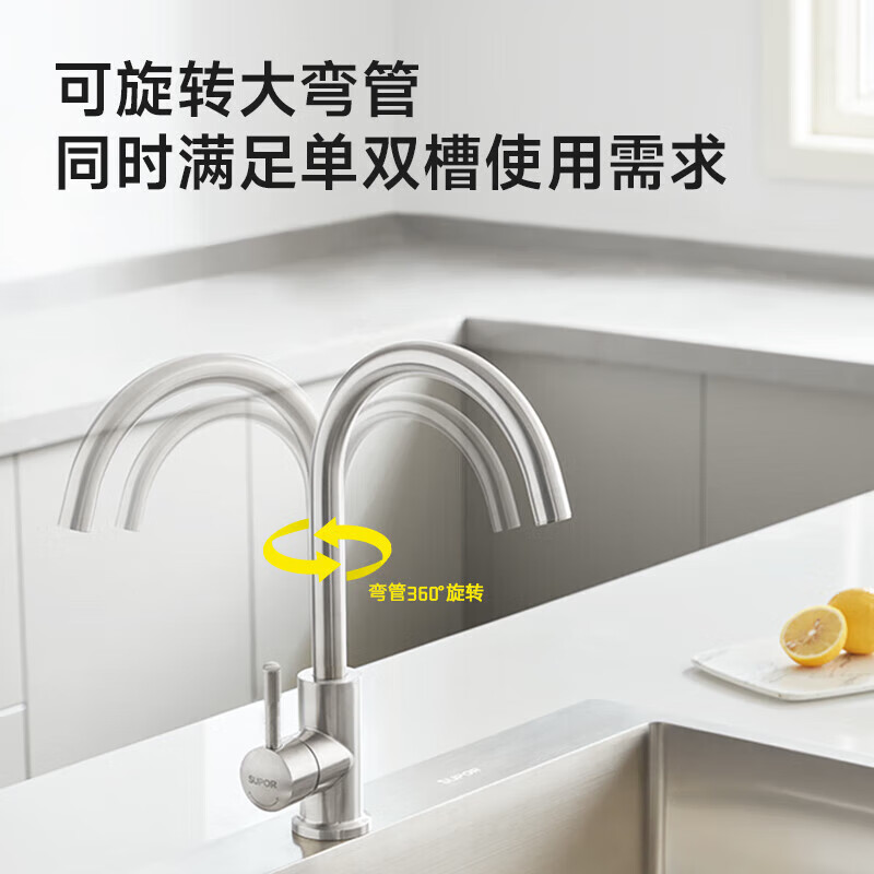 苏泊尔(SUPOR)水龙头厨房冷热304不锈钢洗菜盆洗手面盆水槽龙头360度可旋转价格:169.00元!
