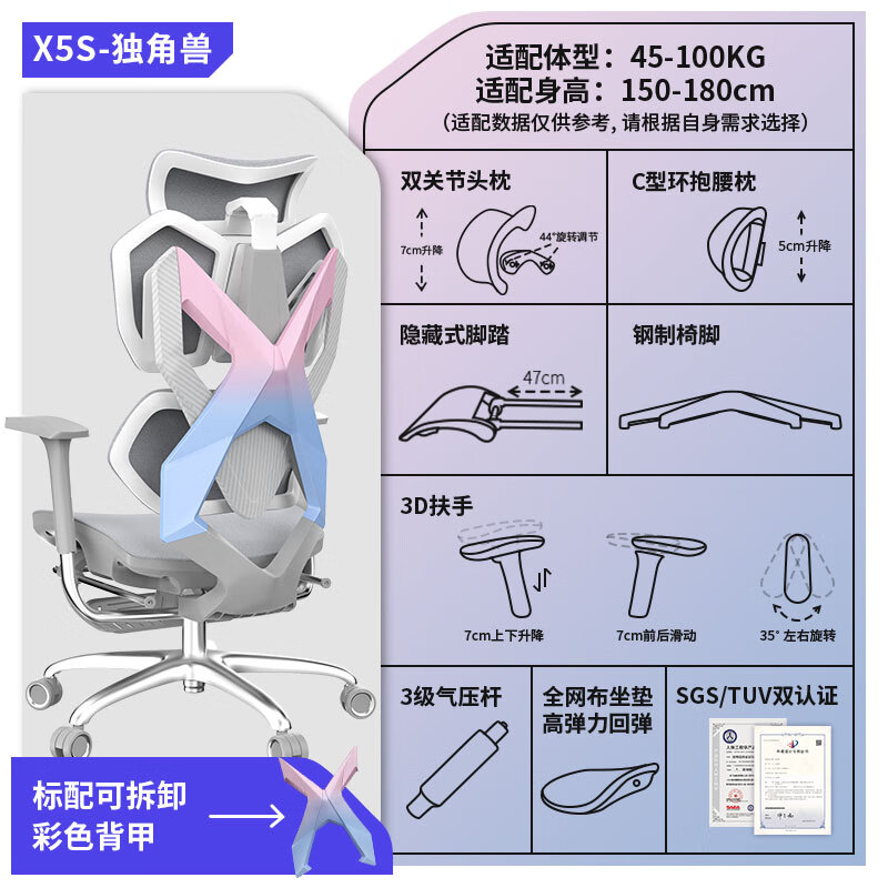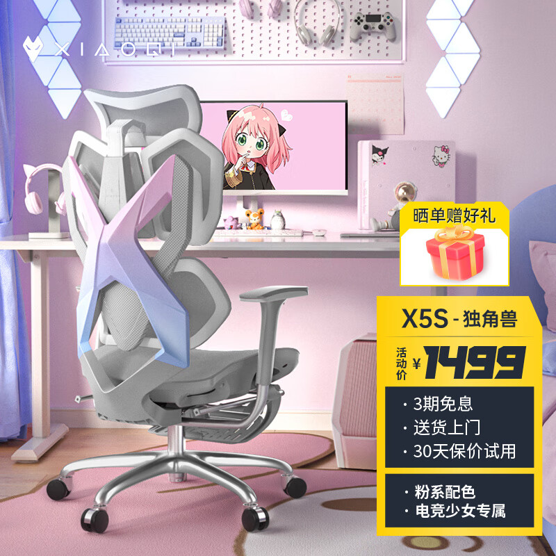 骁骑X5S独角兽粉色女生款人体工学电竞椅家用电脑椅办公游戏椅价格:1899.00元!