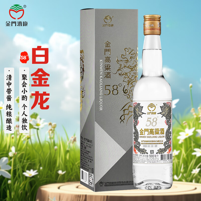 金门高粱 双龙系列白金龙 清香型白酒 58度 500ml 单瓶装 【宴请送礼】价格:167.00元!