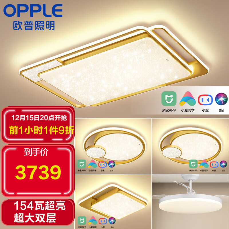 欧普(OPPLE)吸顶灯几何现代简约LED客厅卧室餐厅灯具套餐智能语音调光 套餐5价格:5999.00元!