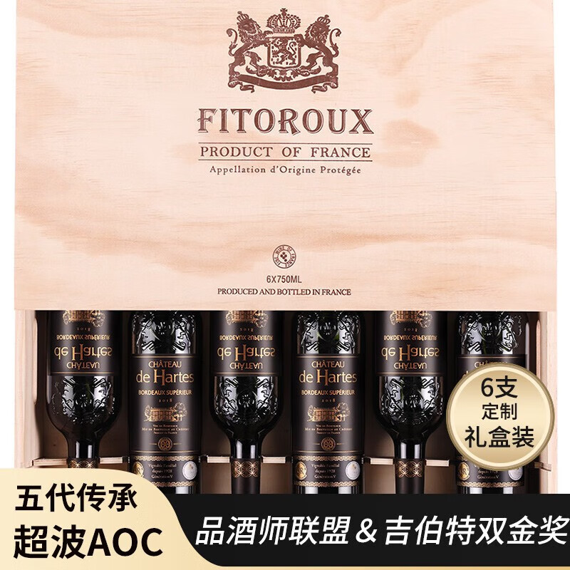 朗柏特法国原瓶进口红酒 干红葡萄酒 波尔多金奖AOC 750ML*6礼盒装价格:918.00元!