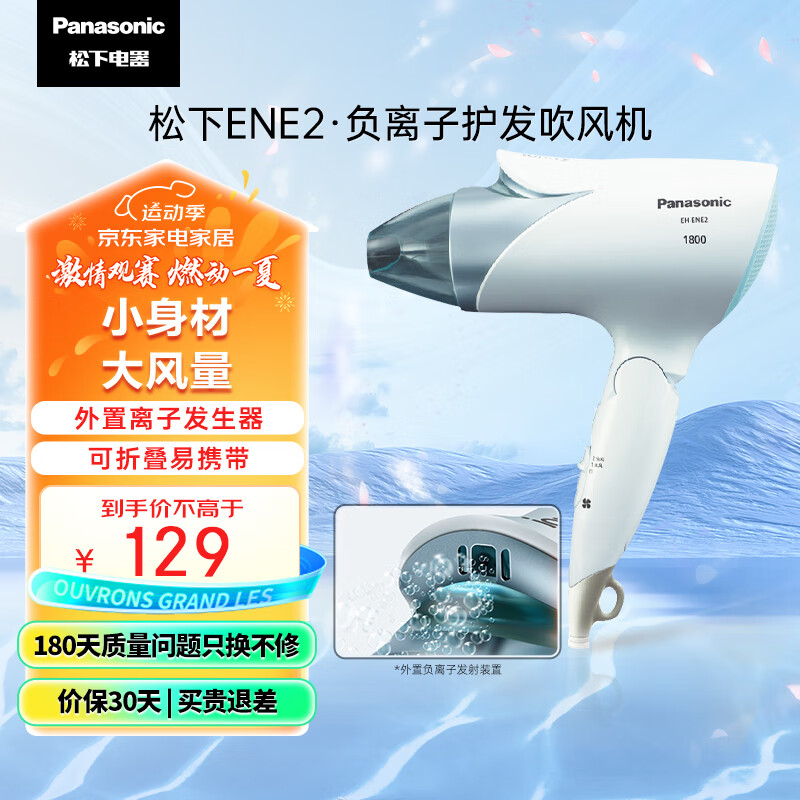 松下(Panasonic)电吹风机 大功率家用高速大风力速干折叠便携学生宿舍用礼物吹发负离子护发吹风筒ENE2价格:129.00元!