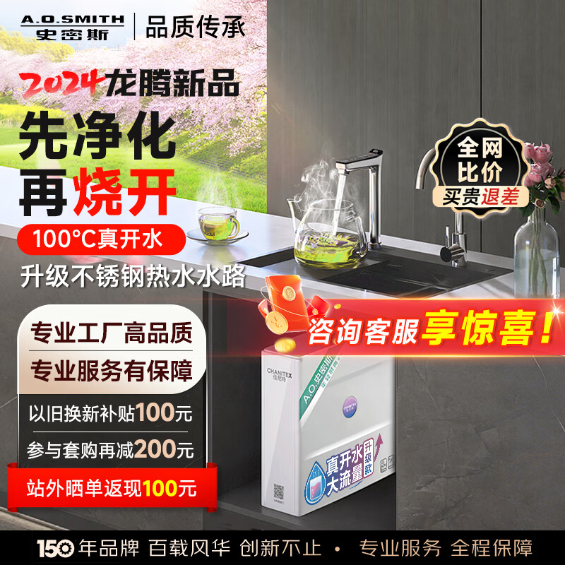 史密斯(A.O.SMITH)佳尼特【24年龙腾上新】加热净水器厨下家用净水机3.4升/分钟CDR1600F【FA1升级款】价格:4599.00元!