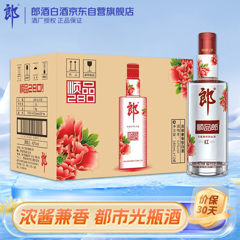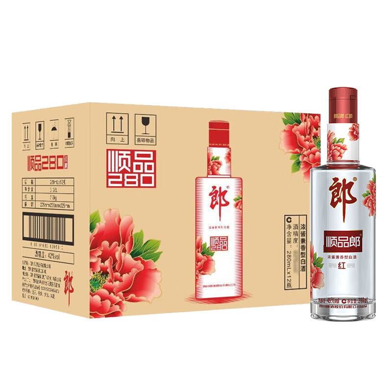 郎酒 顺品郎红顺 浓酱兼香型白酒 45度280ml*12瓶 整箱装价格:467.00元!