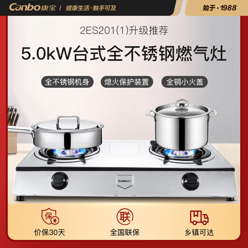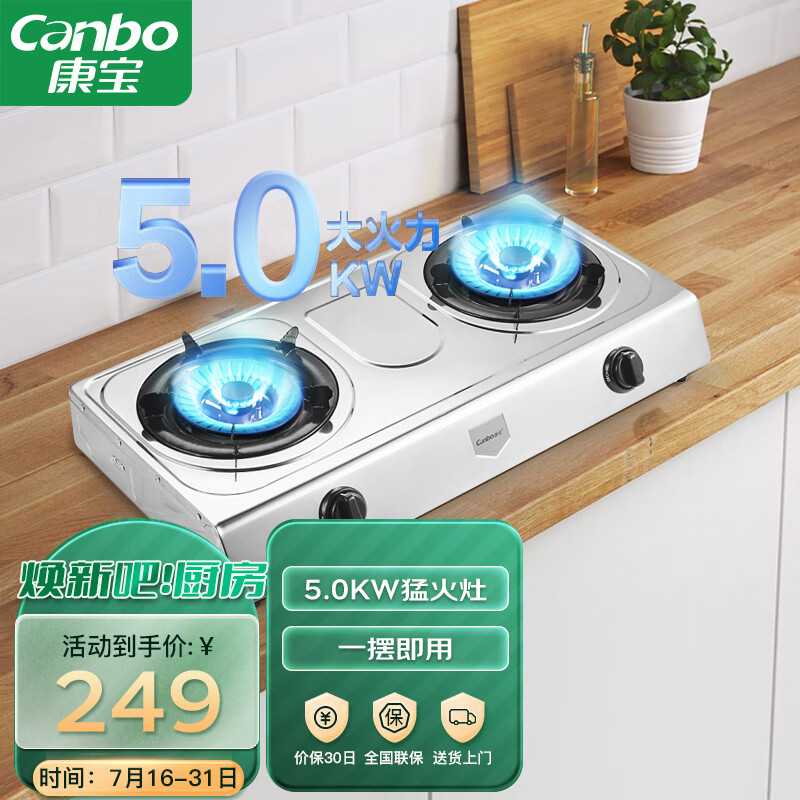 康宝(Canbo)燃气灶双灶具 5.0KW台式灶液化气双灶 家用猛火不锈钢大火力灶台 JZY-2ES201(1)(液化气)价格:249.00元!
