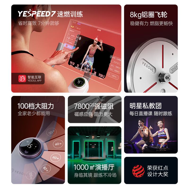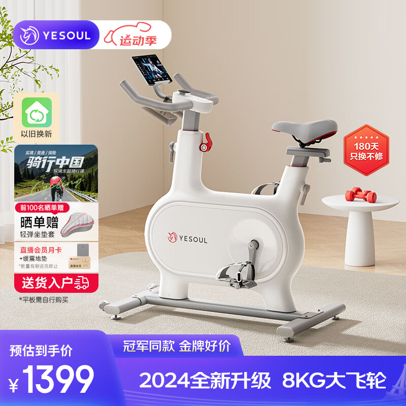 YESOUL野小兽 M2M 动感单车自发电升级智能旋钮家用磁控智能调阻室内健身车价格:1399.00元!
