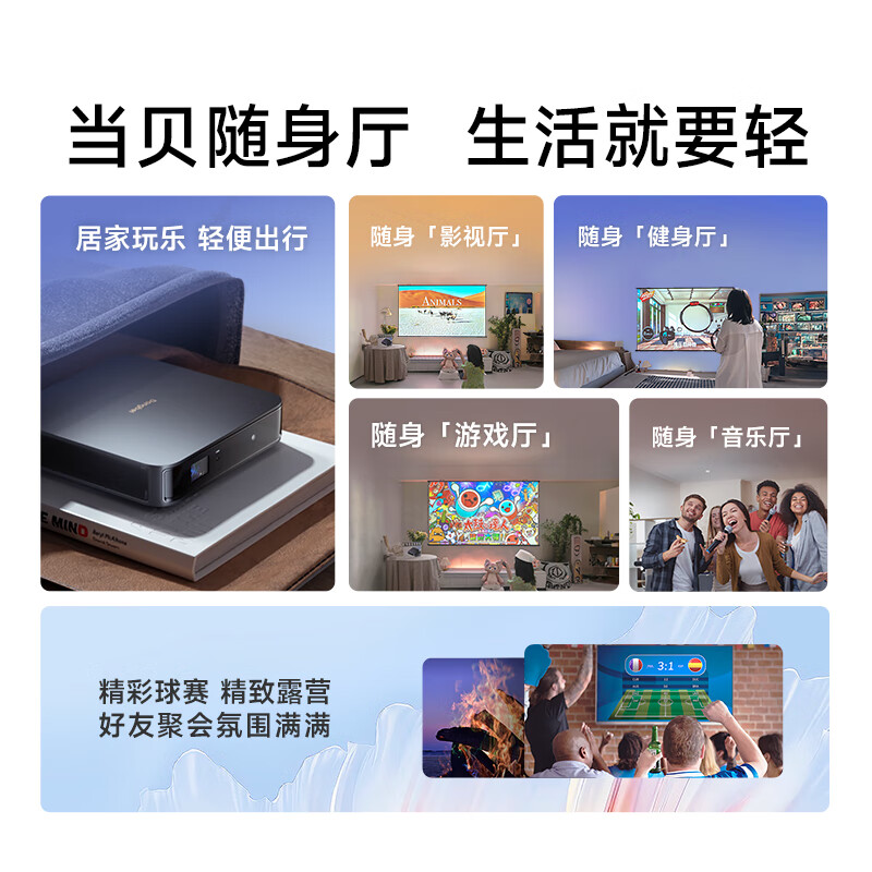 2、对比很多家,选择了当贝,非常好,投屏很清晰,也不卡顿,声音清晰,也没噪音机器轻薄可以随拿随放,白天清晰度也够用,家庭使用刚刚好