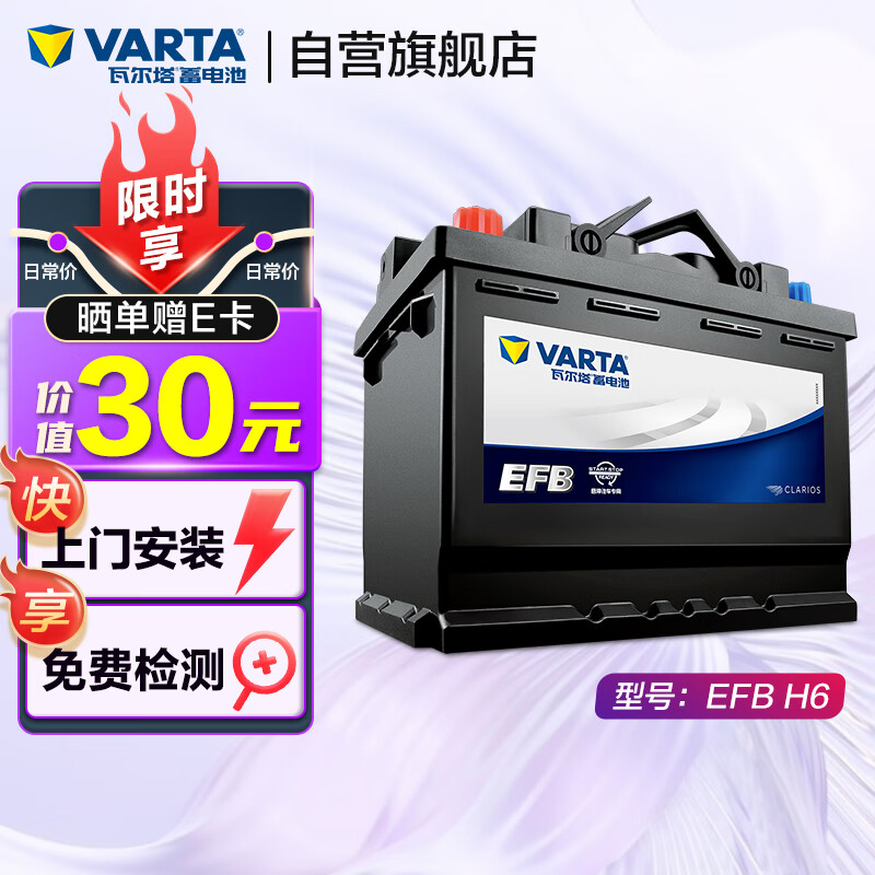瓦尔塔(VARTA)汽车电瓶蓄电池启停 EFB H6 70AH 帕萨特/途观/大众/迈腾上门安装价格:649.00元!