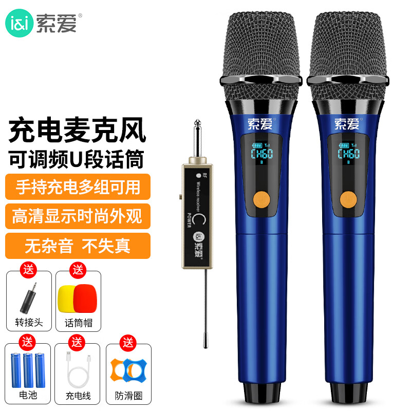 索爱(soaiy)充电无线麦克风家庭KTV唱歌舞台主持演讲K歌会议音箱音响功放一拖二金属话筒 随机发货价格:369.00元!