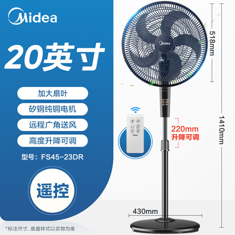 美的(Midea)电风扇静家用摇头立式18寸落地扇音办公室循环扇工业大风力遥控电扇FS45-23DR价格:254.00元!