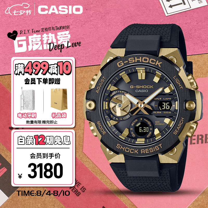 卡西欧(CASIO)手表男G-SHOCK钢铁坚毅之心运动电子表七夕送男友GST-B400GB-1A9价格:3190.00元!