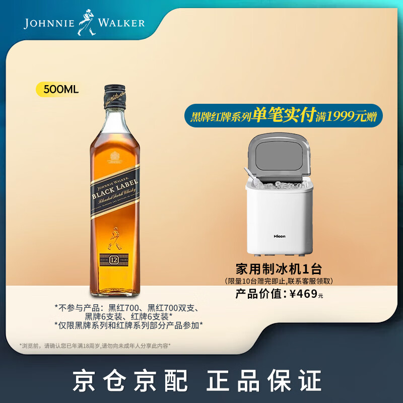 尊尼获加(JOHNNIE WALKER)洋酒 黑牌黑方 12年苏格兰调和型威士忌500ml无盒价格:149.00元!