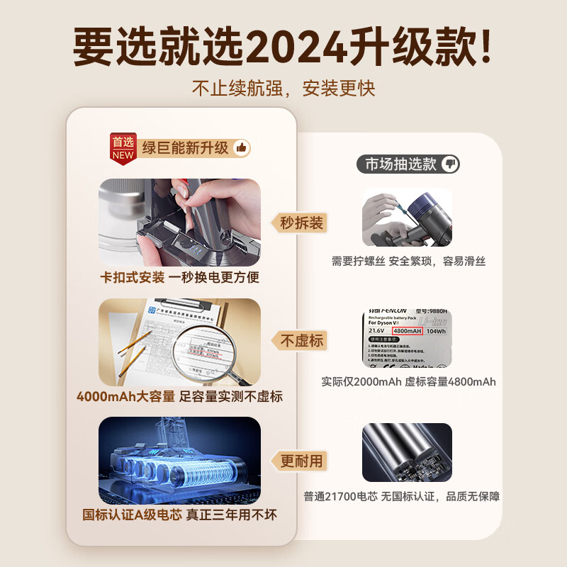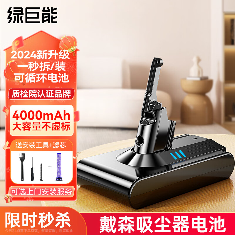 绿巨能4000mAh适用戴森Dyson吸尘器V8电池 大容量锂电池充电V8Fluffy/Absolute/Animal Pro/PM8.SV10型号价格:399.00元!