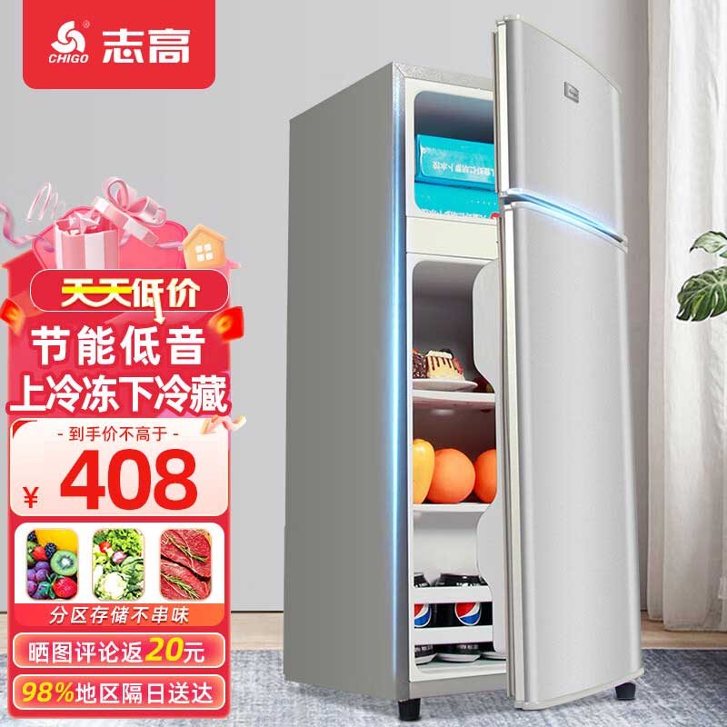 志高(CHIGO)小冰箱 双门宿舍租房小户型家用 冷藏冷冻双开门 迷你电冰箱节能保鲜小冰箱 BCD-82A150D 银色价格:428.00元!