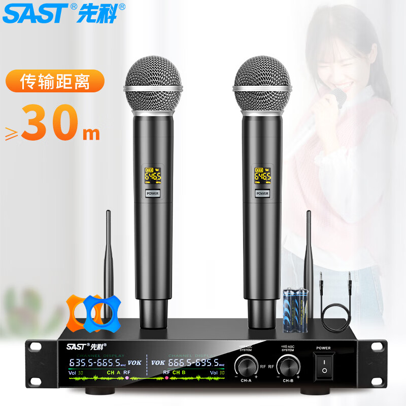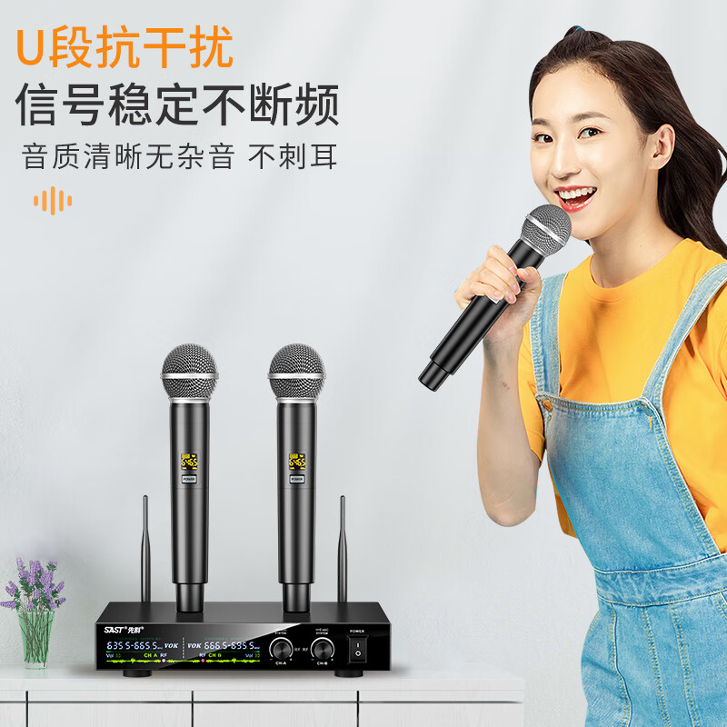 先科(SAST)OK-122B 无线麦克风 一拖二无线话筒 家用KTV音响唱歌会议演讲舞台唱拉卡OK双手麦金属款 黑价格:319.00元!