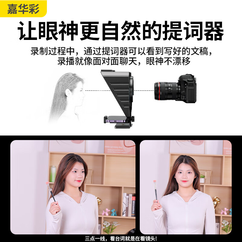 嘉华彩 直播提词器大屏幕手机平板单反相机微单便携大型提词机ipad视频录制提示字幕直播采访拍摄像头提示器价格:173.00元!