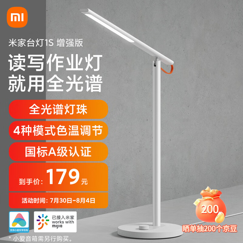 米家台灯1S增强版 智能学习台灯卧室儿童读写作业宿舍书桌led灯小米价格:179.00元!