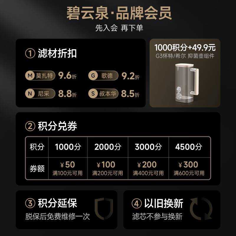 碧云泉G3系列官方净水滤芯慕可R312怀特R315M原厂原装MC122/R108/QC125官方直发品牌原装 G3-R315/R320【3号滤芯】价格:120.00元!