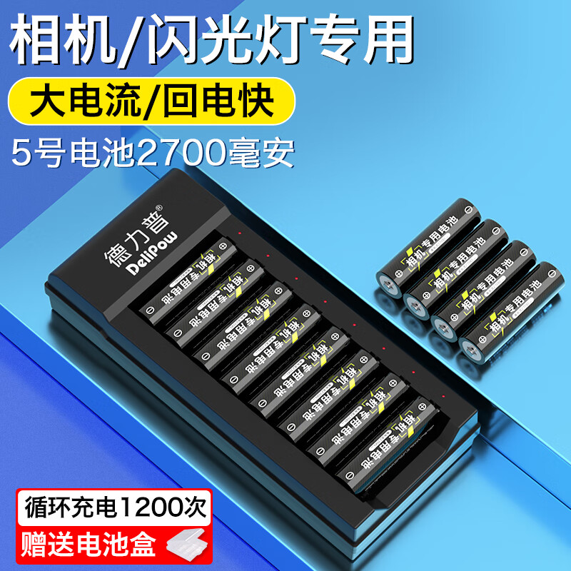 德力普(Delipow)充电电池 5号电池大容量2700mAh配充电器套装 KTV话筒/单反相机闪光灯专用价格:150.00元!