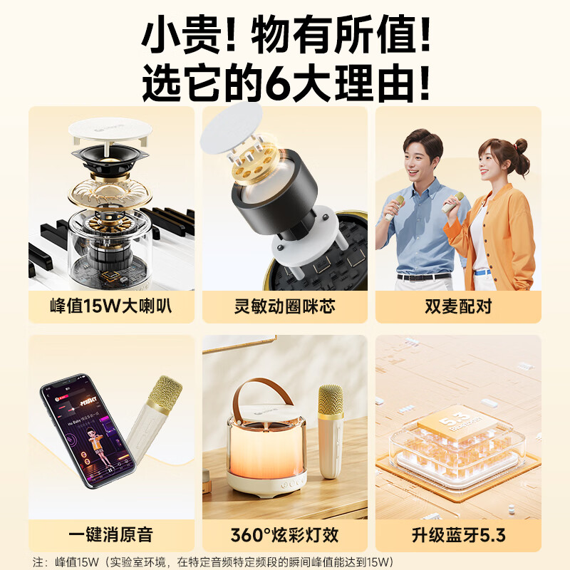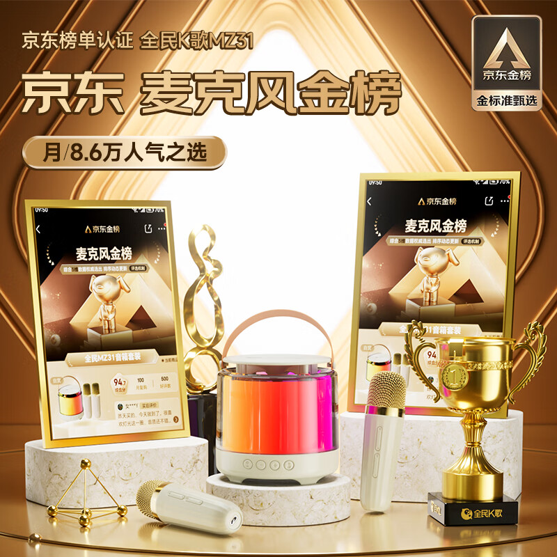 K歌 MZ31无线手提便携式户外广场舞音响套装炫桌面家用低音炮麦克风儿童话筒家庭KTV杏色音箱+双麦价格:169.00元!