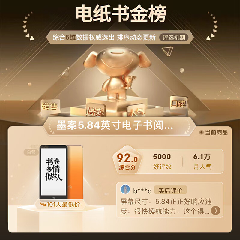 4、之前一直用kindle但是没用多久就屯灰了用了墨案迷你阅以后非常方便路上一直可以看屏幕随便一般但是性价比高而且非常方便!颜色也好看