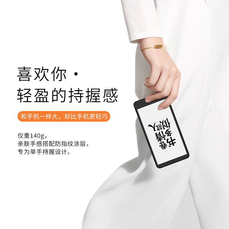 1、大小真的好合适,一只也完全可以掌握,像一个超轻的手机,手感也是特别的丝滑,可以说是梦中电子书了!不需要什么花里胡哨的功能,只需要随时随地掏出来看