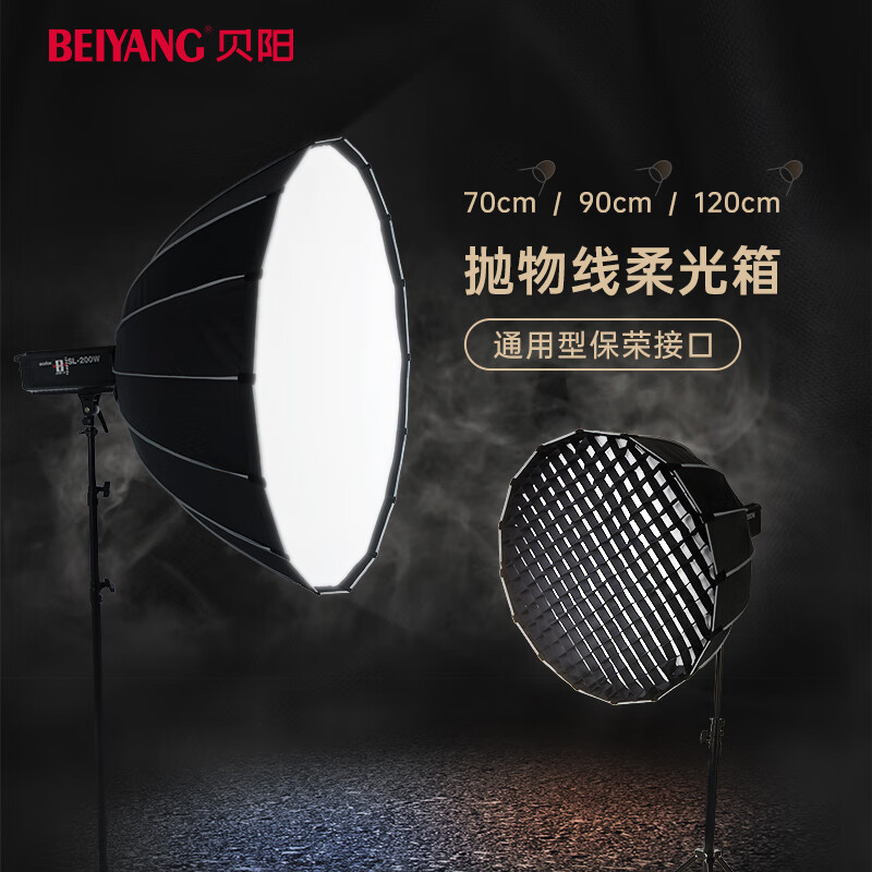 贝阳(beiyang)90cm深口抛物线柔光箱摄影补光灯柔光罩直播便携拍摄保荣口柔光灯箱伞式快装格栅八角柔光箱价格:518.00元!