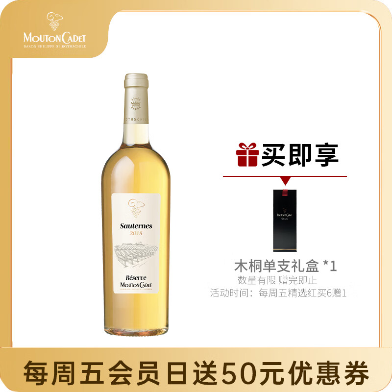 木桐嘉棣(MOUTON CADET)法国 波尔多 珍藏 苏玳 甜白葡萄酒 750ml 单支价格:388.00元!