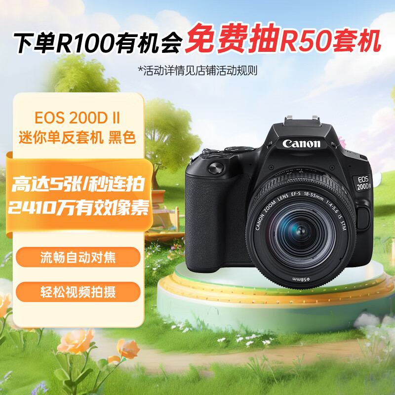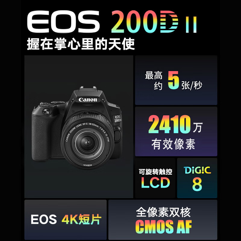 佳能(Canon)EOS 200D2 单反相机 200D II 18-55标准变焦镜头套装 黑色( 约2410万像素/4K短片)价格:5299.00元!