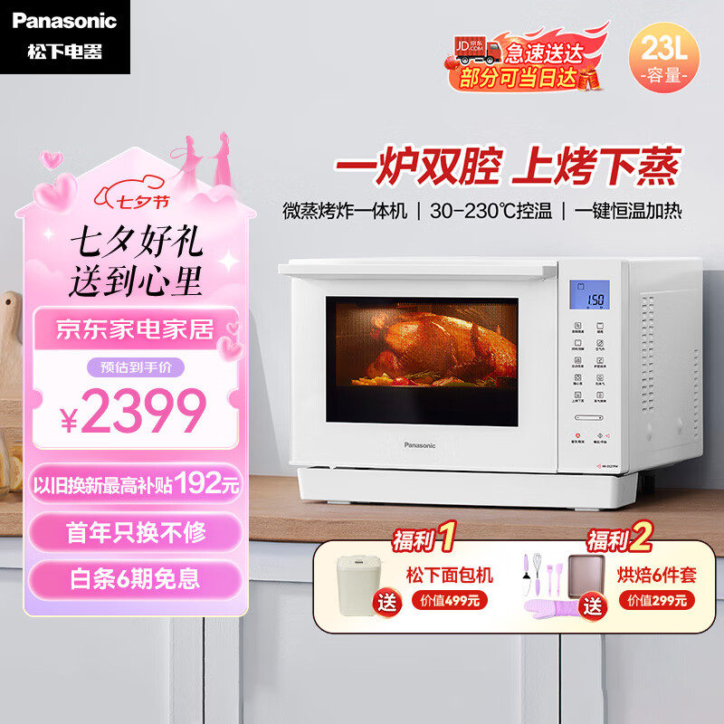 松下(Panasonic)微蒸烤炸一体机 23L家用台式变频微蒸烤 微波炉 烤箱 空气炸 蒸箱 万食炉 上烤下蒸 DS37价格:2299.00元!