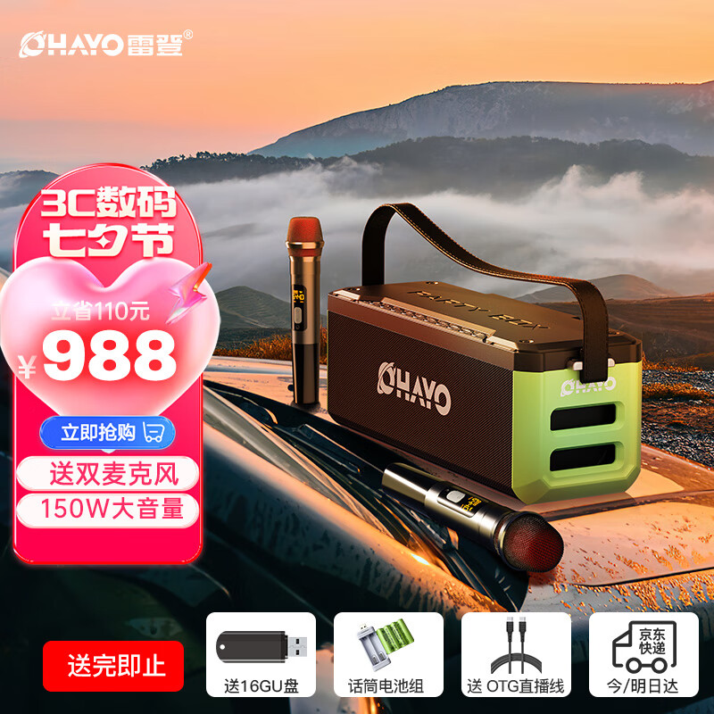 雷登(OHAYO)M10家庭ktv音响套装150W户外k歌大音量环绕立体声声卡蓝牙无线便携式家用电脑直播乐器监听音箱价格:1072.00元!