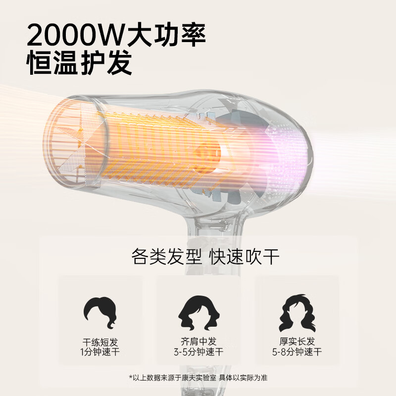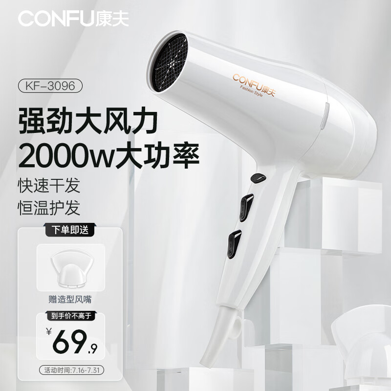 康夫(CONFU)电吹风机家用2000W大功率大风力冷热风速干恒温护发吹风筒KF-3096价格:69.90元!