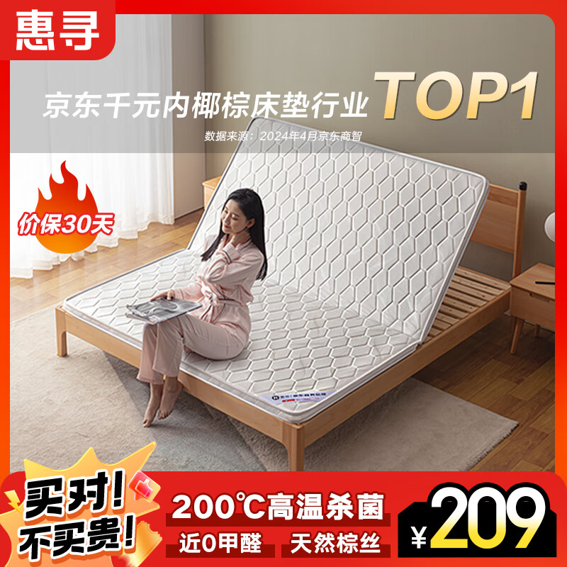 惠寻 京东自有品牌 椰棕床垫硬棕垫薄床垫1.35*2米5cm棕芯3cm折叠价格:239.00元!