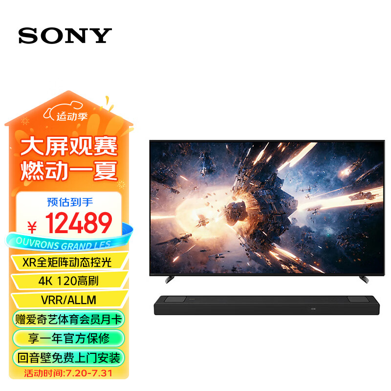 索尼(SONY)XR-65X90L+HT-A5000 旗舰游戏套装 回音壁 360智能穹顶 无线家庭影院 4K/120 VRR ALLM价格:12489.00元!