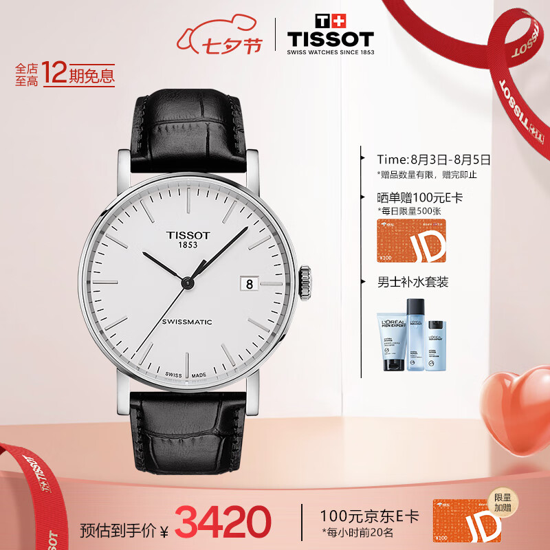 天梭(TISSOT)瑞士手表 魅时系列腕表 机械男表 七夕送男友T109.407.16.031.00价格:3800.00元!