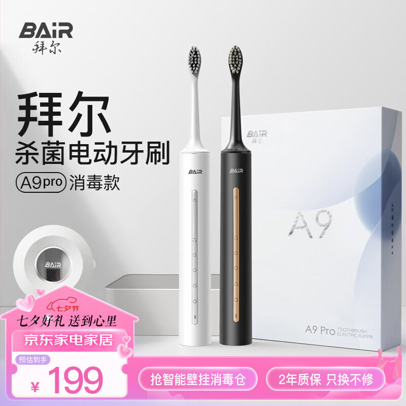 拜尔A9pro 智能杀菌电动牙刷成人声波充电式震动软毛情侣学生党智能自动男女士 送女朋友 云白价格:199.00元!