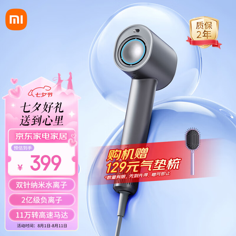 米家【七夕情人节礼物】小米高速水离子吹风机H701 家用大风力 大功率速干降噪 双水离子护发 银河灰价格:399.00元!