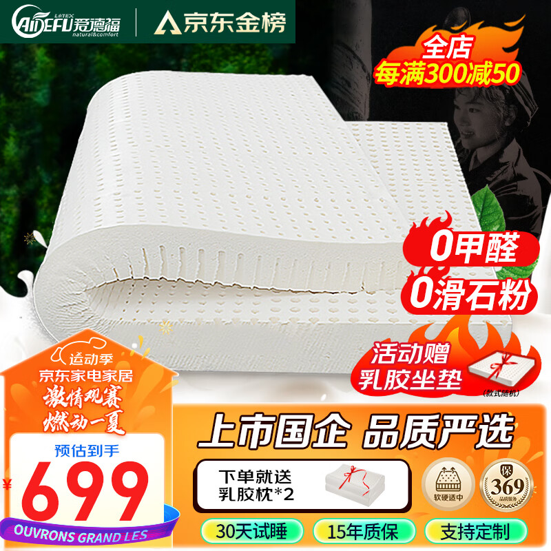爱德福乳胶床垫泰国进口天然乳胶 榻榻米单双人定制 1.8米*2米价格:825.00元!
