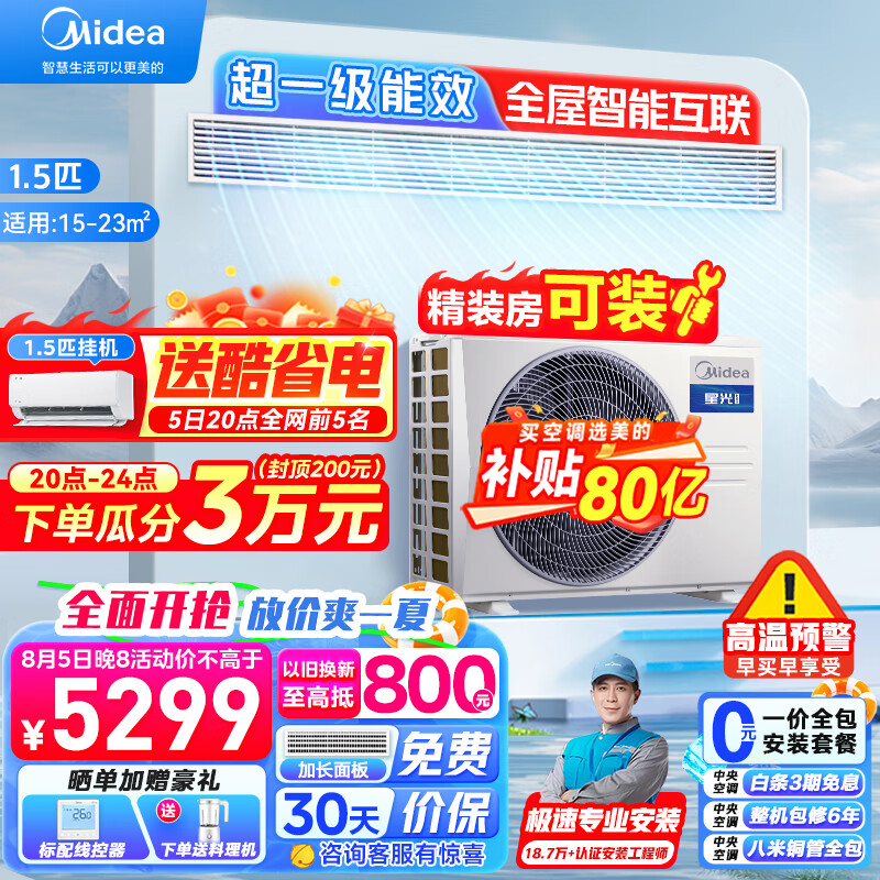 美的(Midea)中央空调风管机一拖一1.5匹一级能效家用嵌入式变频冷暖星光科技版KFR-35T2W/B3DN1-XG(1)Ⅲ价格:5299.00元!
