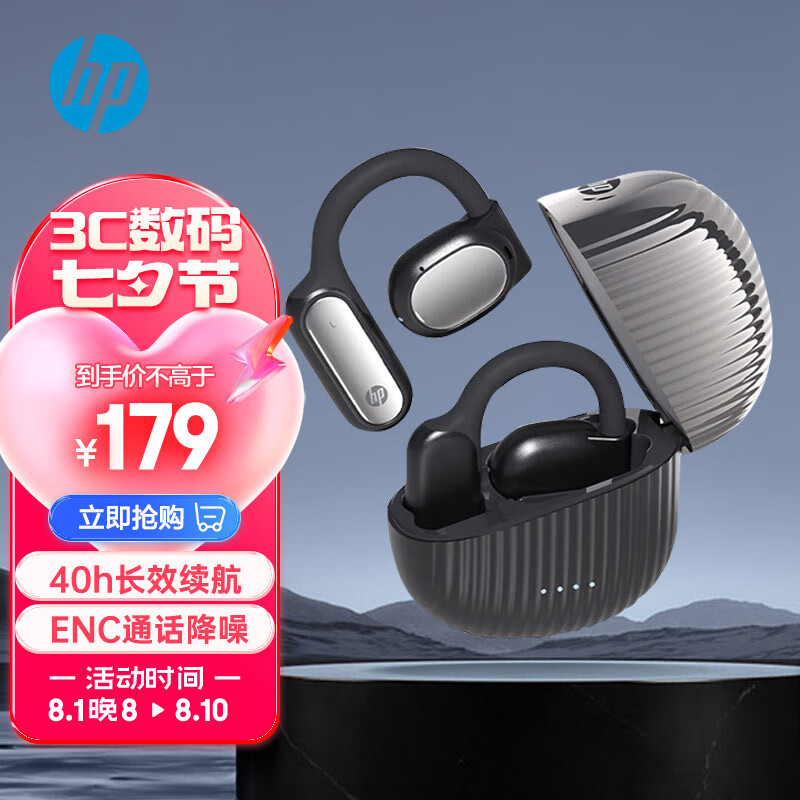 惠普(HP)H23D无线耳机 音乐蓝牙游戏男女通用半入耳式降噪适用于苹果华为耳机黑色价格:179.00元!