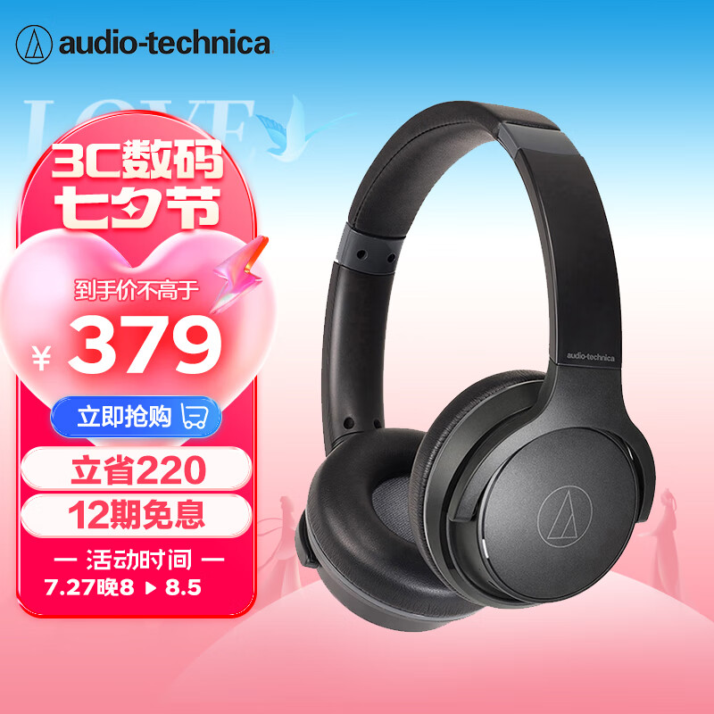 铁三角 S220BT 头戴式立体声无线蓝牙耳机 长久续航 音乐耳机 便携式 BK价格:599.00元!