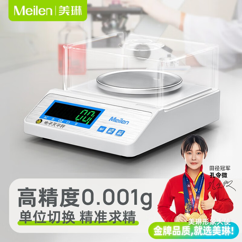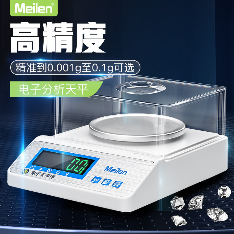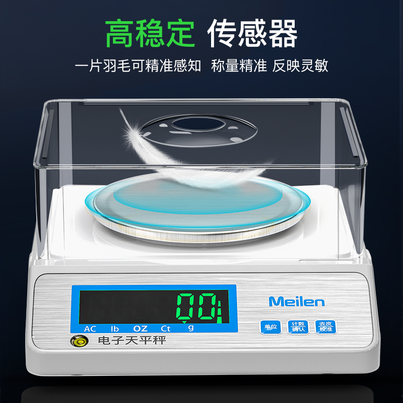 Meilen 电子天平0.01g0.001g高精度电子秤克称天平秤中药黄金珠宝秤实验室分析 圆盘-量程500g-精度0.001g-配防风罩砝码价格:599.00元!